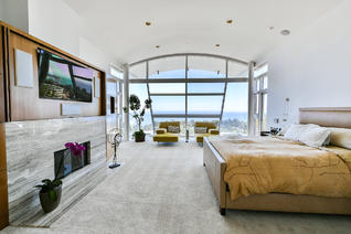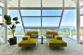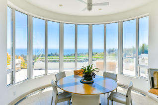 The living room showcases a stunning floor-to-ceiling picture window overlooking the Malibu coastline and ocean. This extraordinary view is often referred to by locals as “The Queen’s Necklace,” as the evening lights stretch from Malibu through Santa Monica and down to Palos Verdes, resembling a dazzling necklace of lights or diamonds fit for a queen.